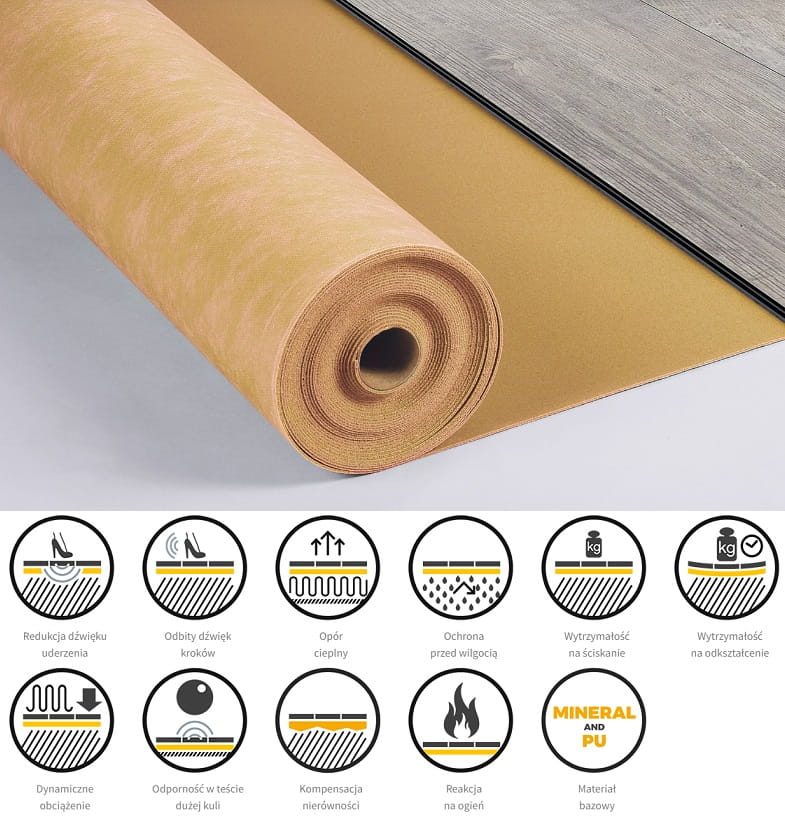 Podkład przeznaczony przede wszystkim do montażu podłóg winylowych typu LVT / Rigid montowanych w sposób pływający. Zalecany do systemów ogrzewania podłogowego